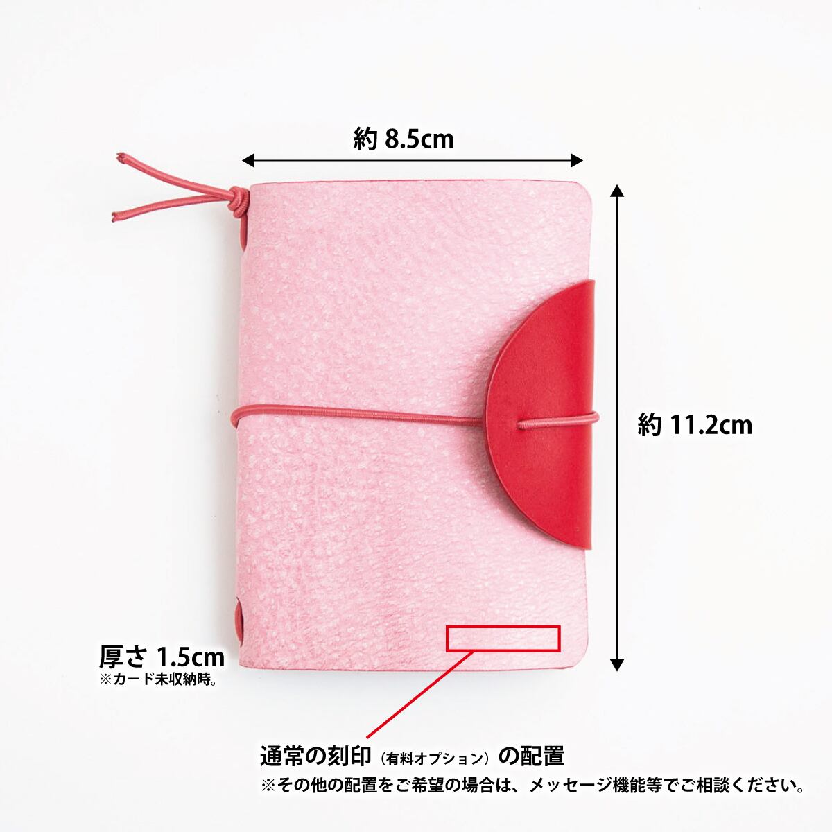 縦幅11.2cm、横幅8.5cm、厚さ1.5cm
