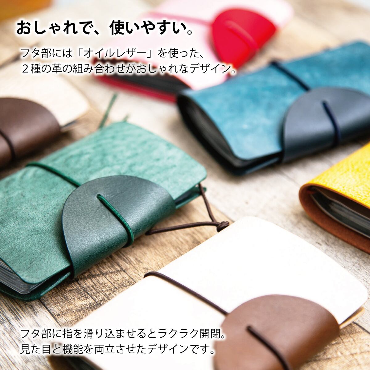 ・フタ部にはイタリアンレザーの「オイルレザー」を使用。