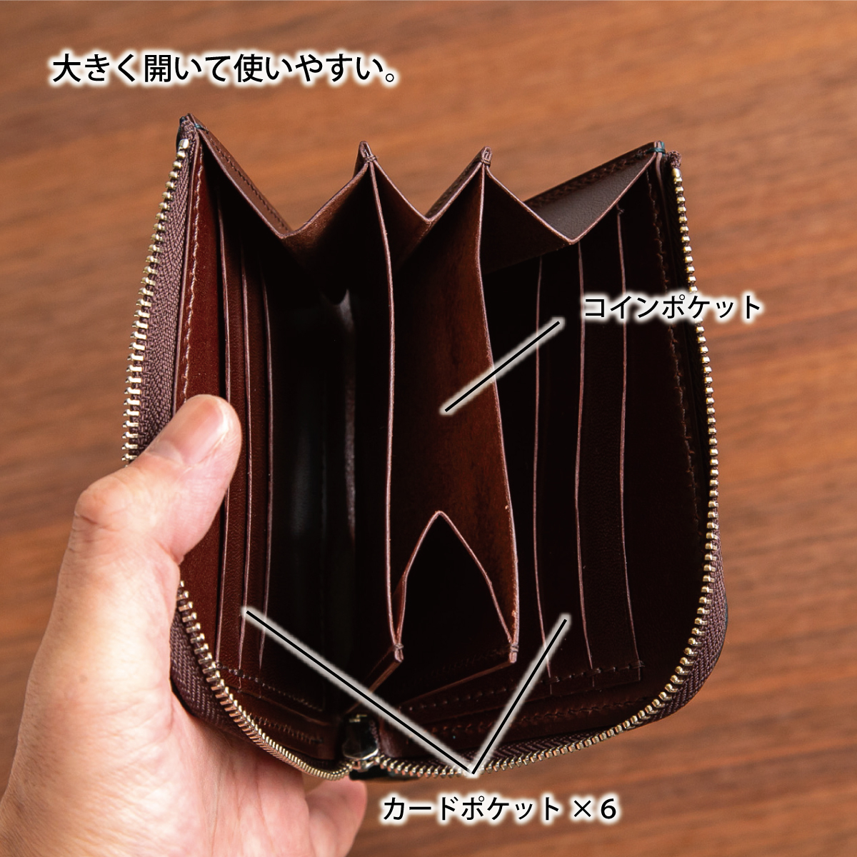 使いやすさに定評のあるL字ファスナーのミニ財布。