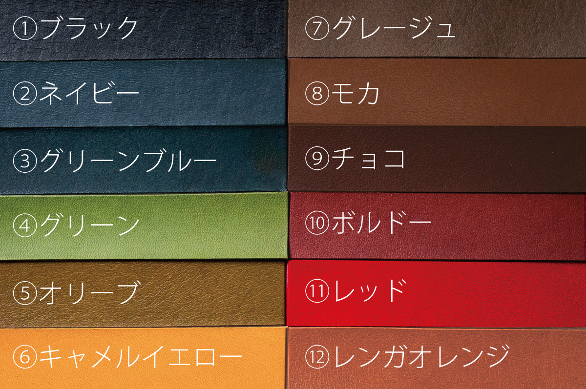 メインの革は12色から選択が可能。